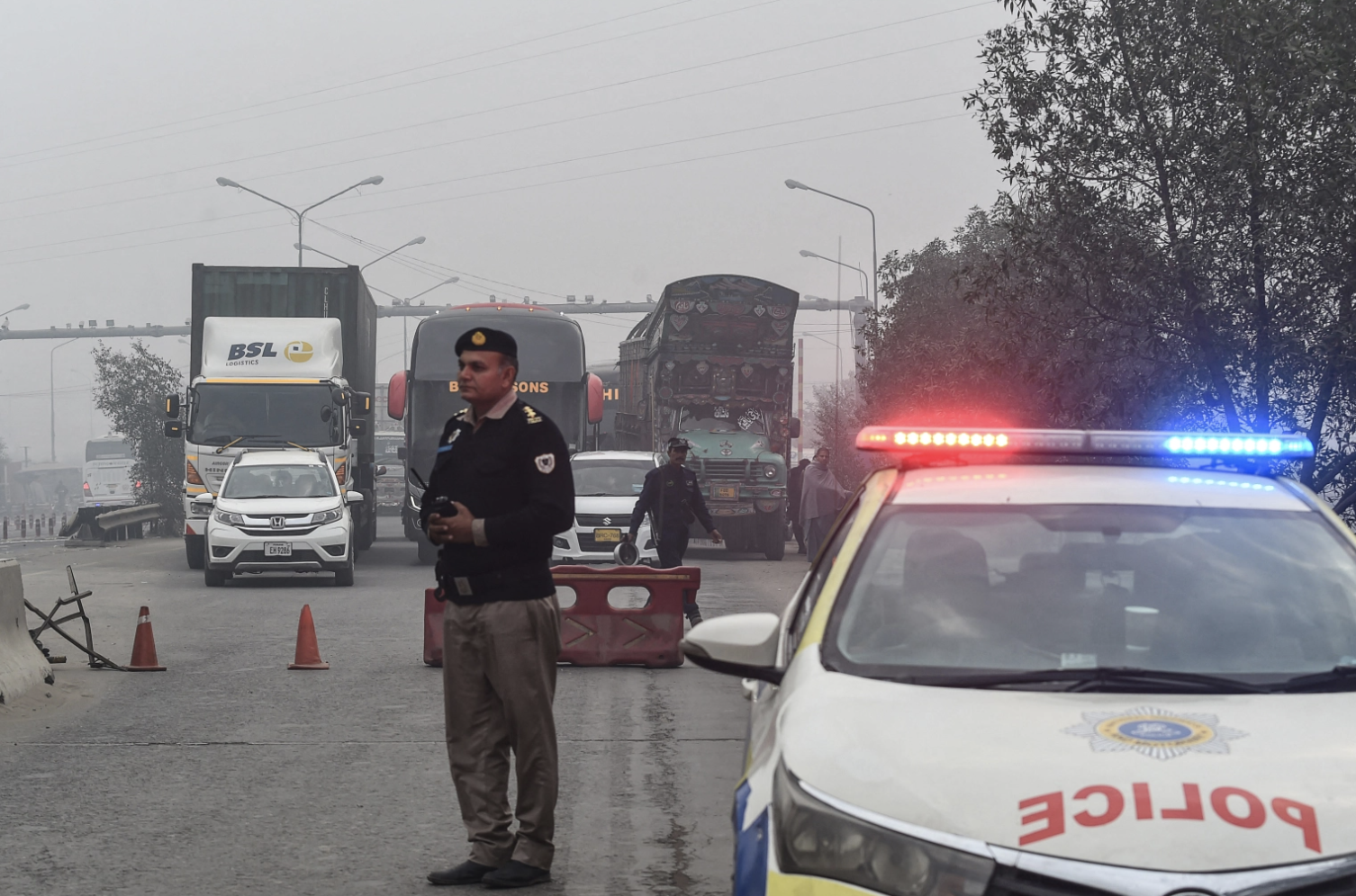 Police are seen in Lahore, Pakistan, on December 2, 2021. Journalists Ayaz Amir and Ahmer Shaheen were recently attacked in Lahore. | Photo Credits: CPJ
